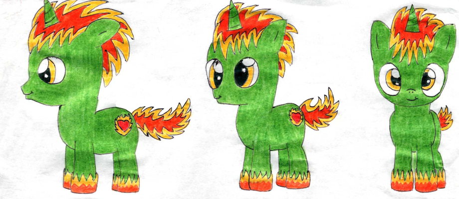 Blaze Heart is a very compassionate unicorn who wanted nothing more then Cadences approval since he looked up to her. He can be very playful but can do accidental things with his fire powers.