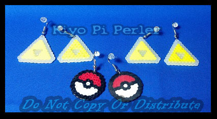 Tri-ball Earrings - So was trying to think of something new with the mini-perlers and I thought why not give our pierced brothers and sisters some love... here's some of the gamer earrings I'll have ready at the next cons I attend. (^__^) Original concept, though the patterns are super basic so can't really claim for those even though I did them free hand with no ref. lol They are about the size of a Nickle (slightly smaller than a quarter) and are near weightless. Will be working on a few more ideas but if you are interested in a custom I am thinking like $10 ~ $20 depending on complexity and $5 for shipping.