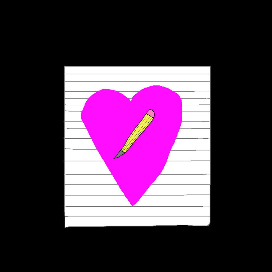 Sarah's Cutie mark is a stack of paper with a pencil inside a pink heart.