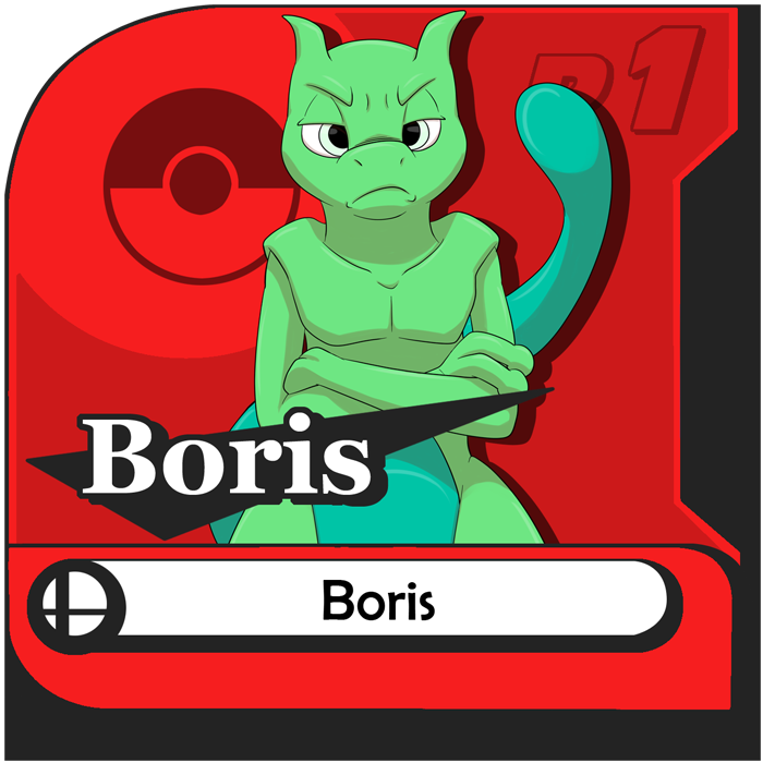 In canon Smash, when Mewtwo doesn't win, he doesn't clap for the winner, he just acts all salty about it. Boris is always salty.
