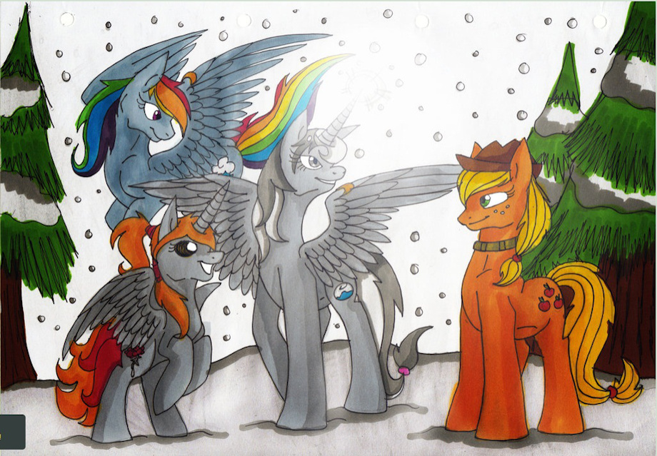 It is Frostweave with her daughter Silver Rose (If I am remembering her name right) with Applejack and Rainbow Dash.