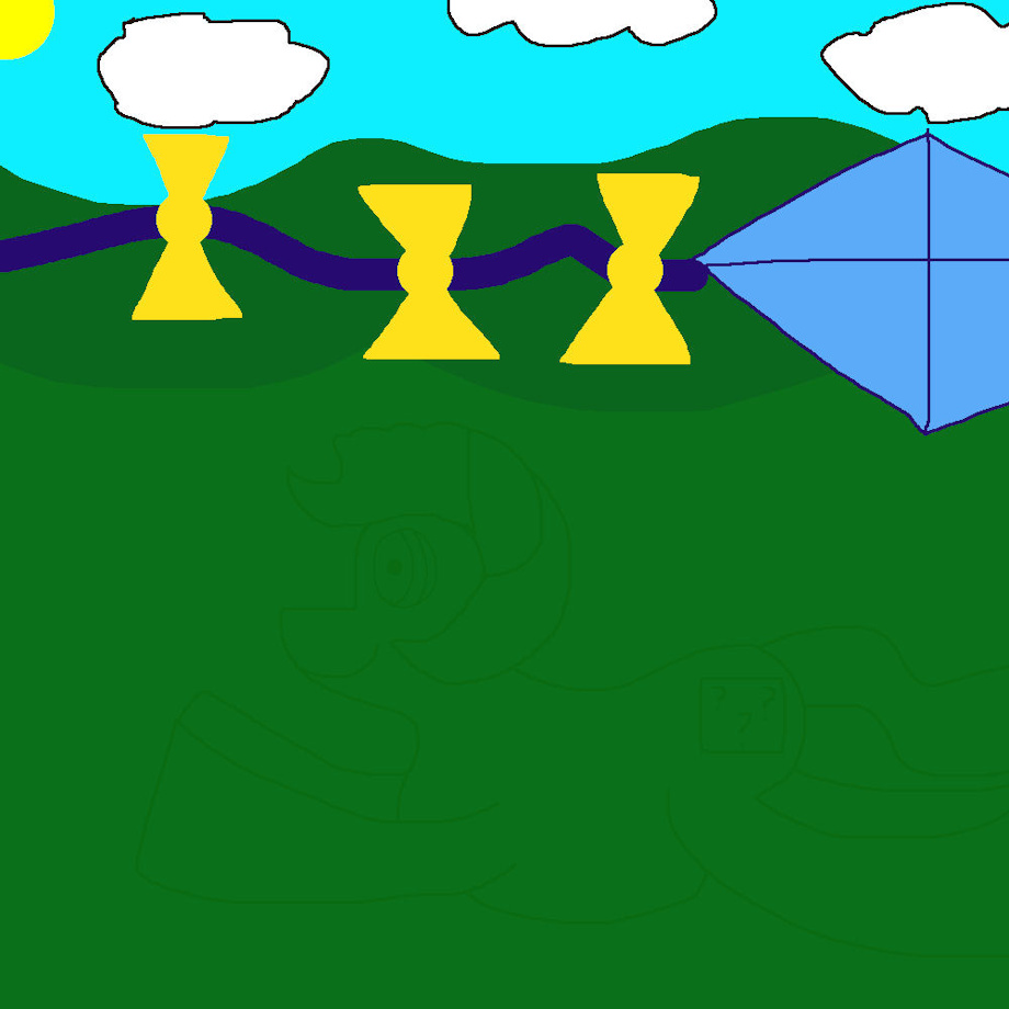 Slipper Slide is a master of camuflage but trust me, she's there. (Hint: Look under the kite in the lighter green grass)