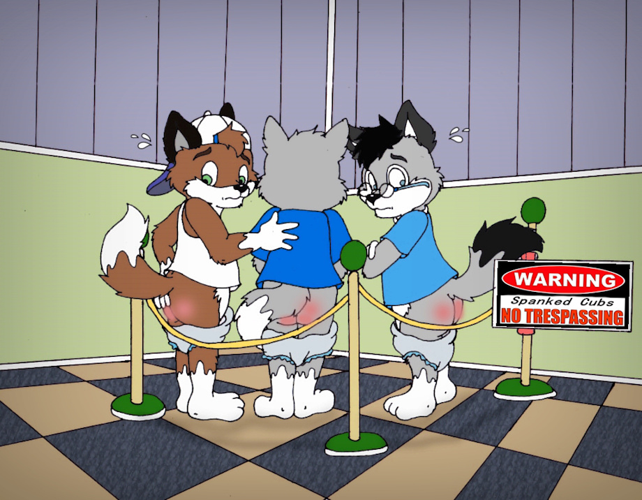 Chris, Caiden and Loupy were officially babysat by the diapered grown-up Lubu, but the dragon had fallen asleep. So the three cubs played football inside the boss' house and what was supposed to happen, happened. They broke a vase. The boss who was working upstairs and had asked Lubu's help so he wouldn't be disturbed was forced to put stuff on hold and deal with it. He asked the three pups who did it and they couldn't agree on any one culprit so Spankino spanked them all three. Chris ended first, as the boss' adopted son, Caiden second as the oldest and me as the third one but trust me... it didn't mattered. We got the same number of spanks, our bottom so burning we couldn't put back our diapers on because it was painful. We were then sent into a corner to think about what happened while the Boss hunted the last diapered bottom to add to the time-out zone : Lubu. The grown-up hatchling had fled the scene as soon as he heard the boss scolding us, but he can't escape the firm paw of justice !