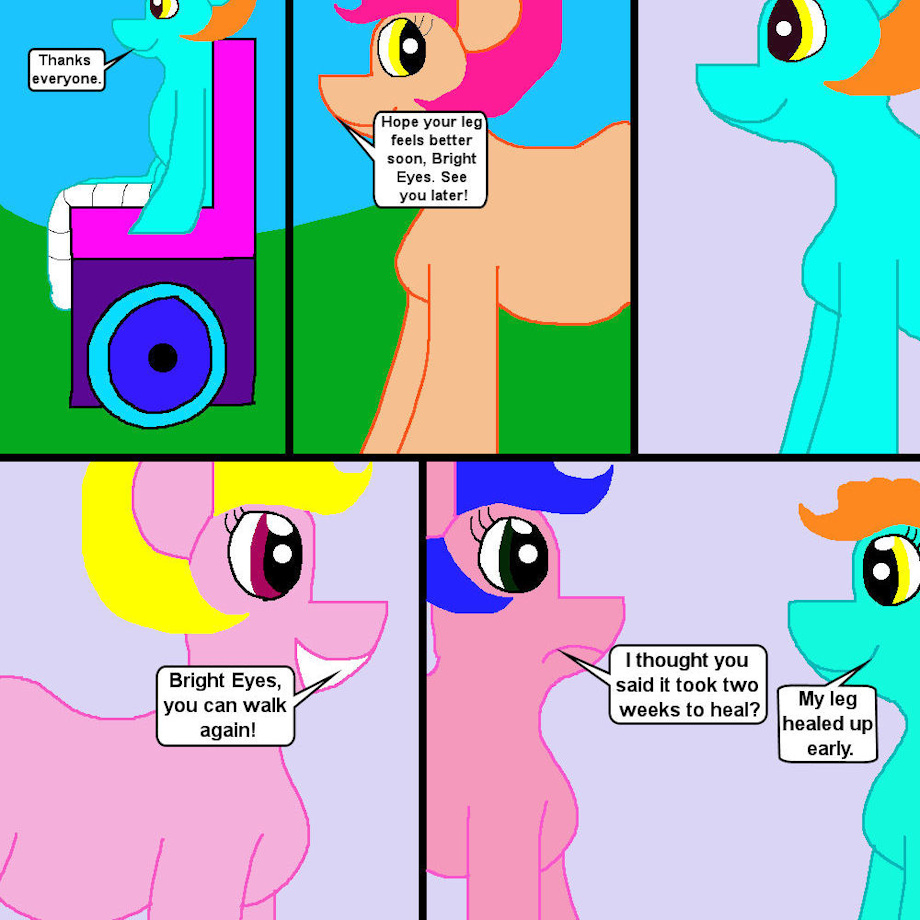 The ponies make Bright Eyes feel better but then later get a surprise.