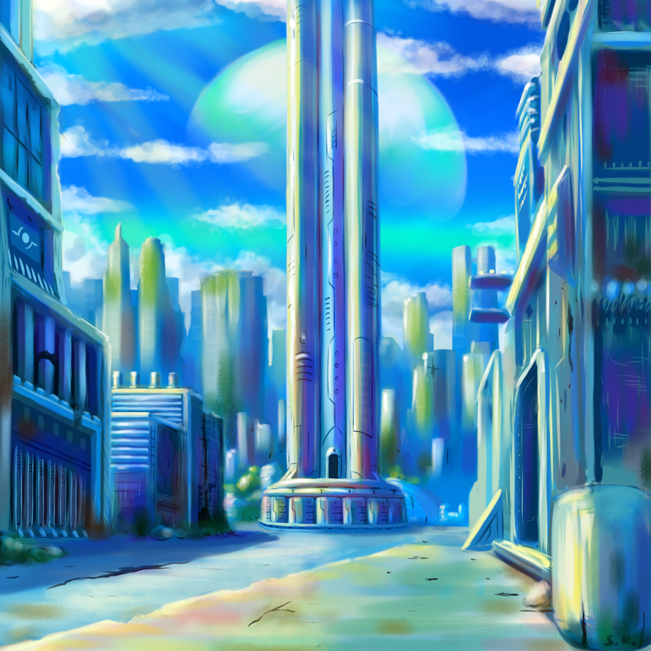 This is the starting setting for my current Jade fall works. That HUGE tower in the center houses the dormant spectral reactor for the city... and is also the original colony drop ship. Did not have time to write so I thought this would be a good filler