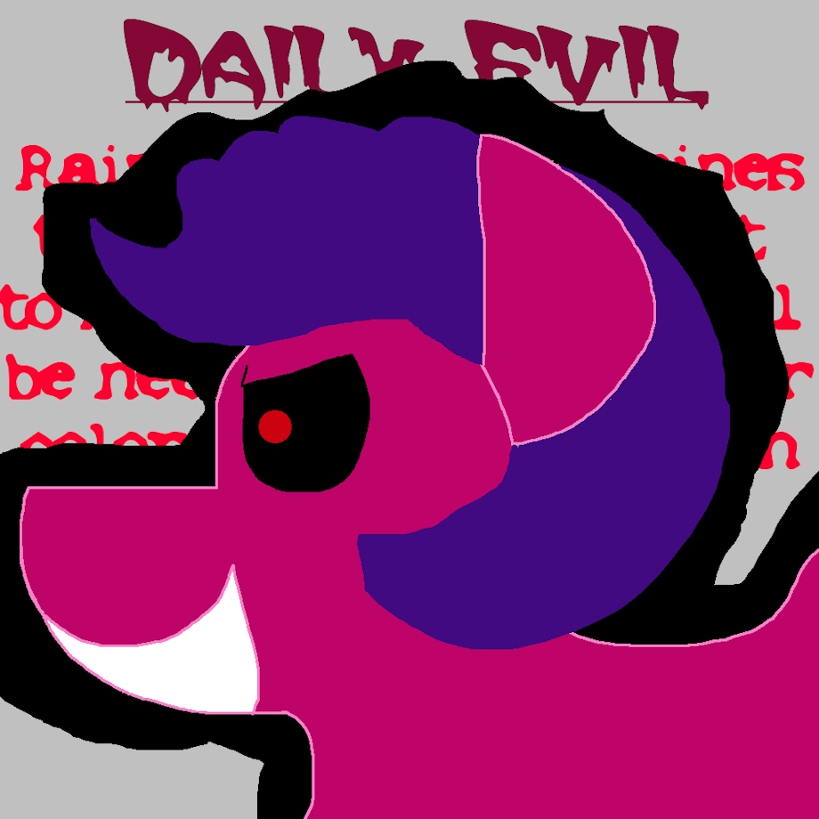 Panic Slash posing with the town's Daily Evil newspaper, complete with a bogus story. Her card's info says: