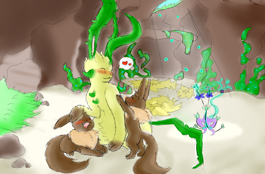 Here is the ending of this commission. All three of them are all snuggled up in their den. I really enjoyed doing these back in the day. I always enjoy drawing new pokemon! :D