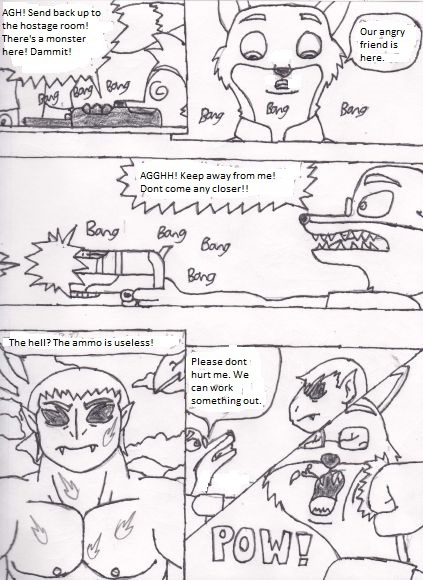 Uh oh, I feel sorry for those bad guys now that our monster friend has arrived.