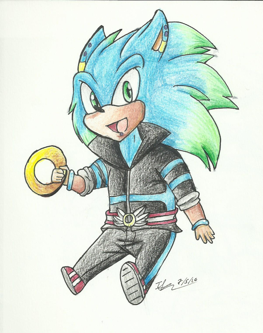 I decided to take out my colored pencils and do a chibi version of my Chaos Sonic. He looks so adorable. ^u^