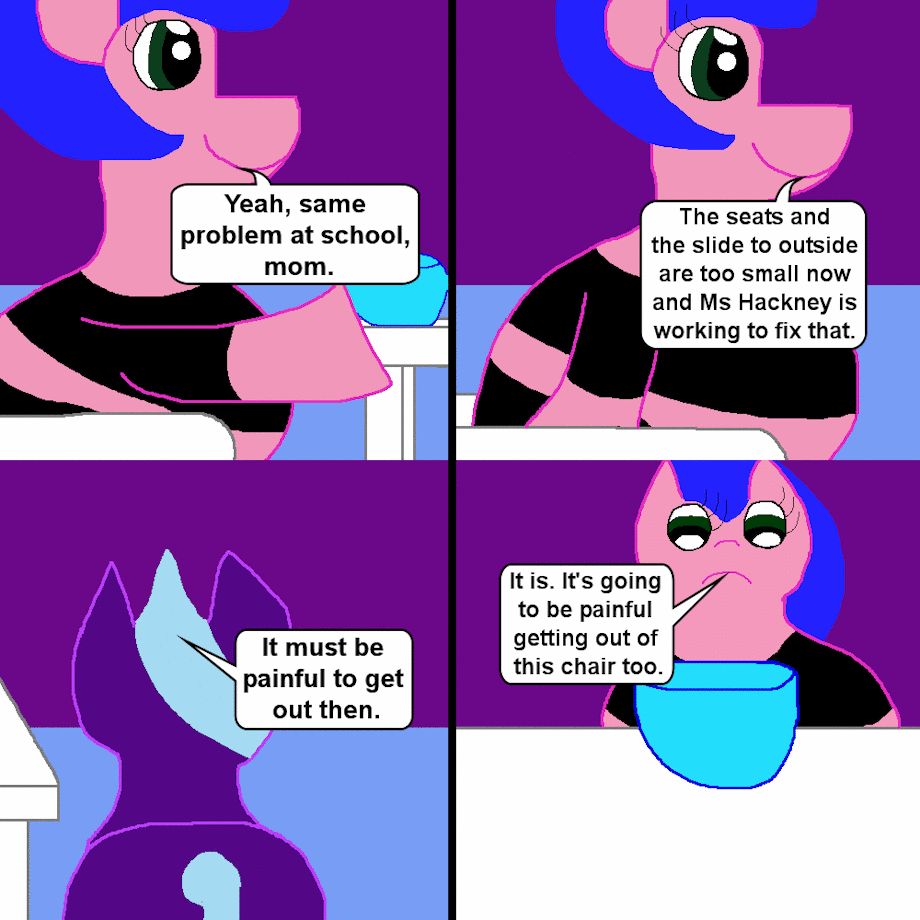 Melody's problem at home has been repeated at school and it's going to be just as hard to get out of the chair as it was to get in.