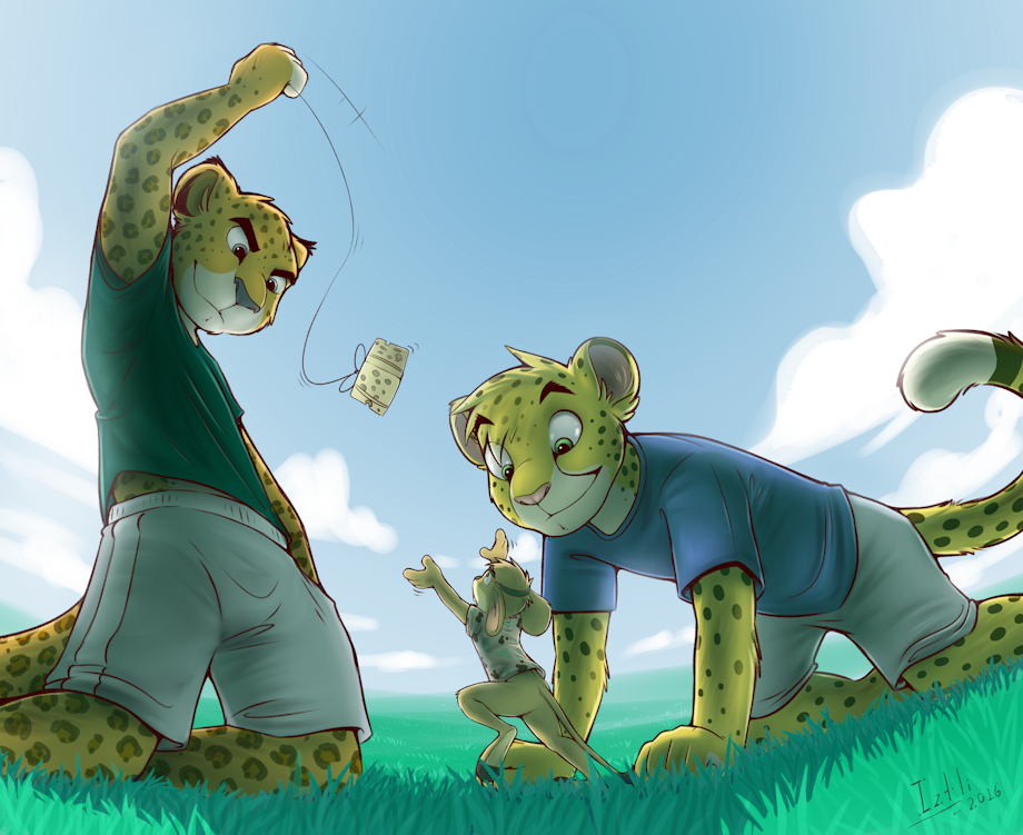 *takes the cheese and gives it to the mouse, calls the two cheetah kids parents as the cheetah kids