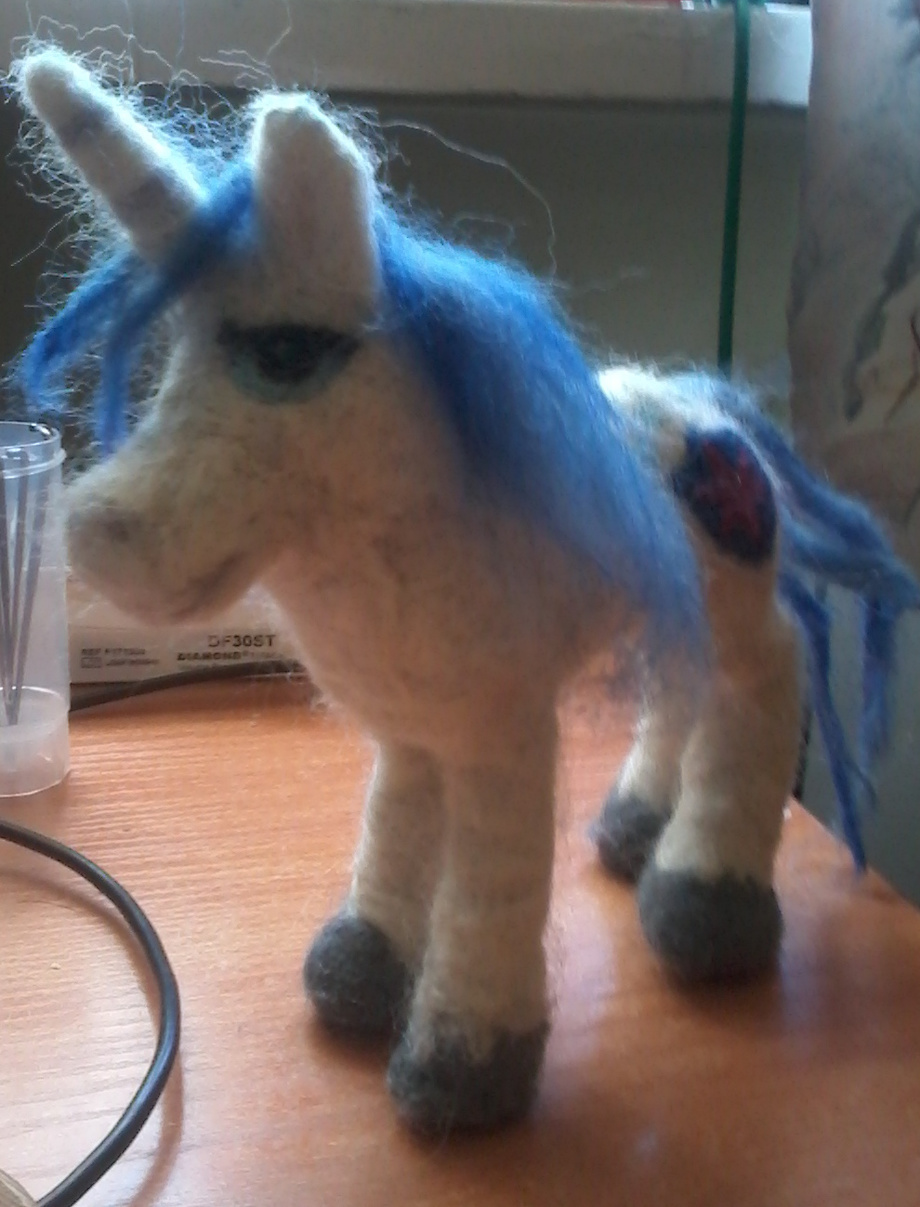 Few weeks ago I got idea to try needle felting, and in just this same time I started watching: My Little Pony: Friendship is Magic tv show. I thought that using one of character from this show is good idea to start my own adventure with this type of art. The design is simple, and just I like pastel colors of ponies. I messed with some of details, and I've got impression that he looks more like Generation III, than G IV, but in total I think it look's quite nice for the first. Hope you like it, and be ready for next of my needle felted sculptures.