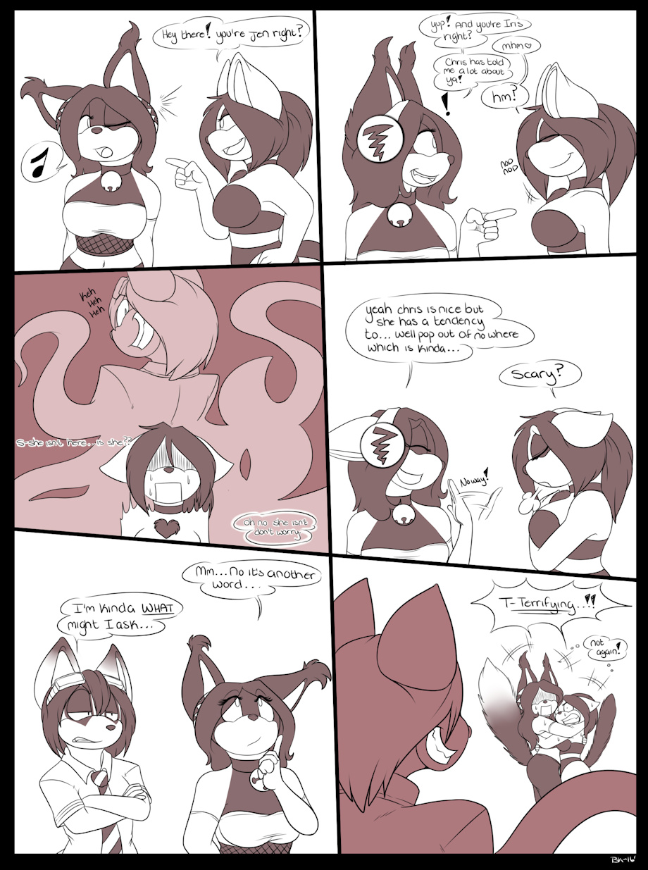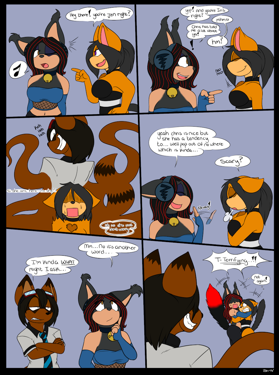 Soo this is a little something I got from [icon]bubblekitten17[/icon] of her Character Iris Meeting Jenna for the first time. How you may ask well. Well its all because of good old Chris. Yep Chris meet Iris first and now Jenna has thanks to her, but Iris saw a different side of Chris and well its a side that really makes you want to run away like hell like really fast. So here they both are having a great convo and can agree on the same thing. Chris is very Terrifying when she wants to be...Seriously How and Why Chris XD