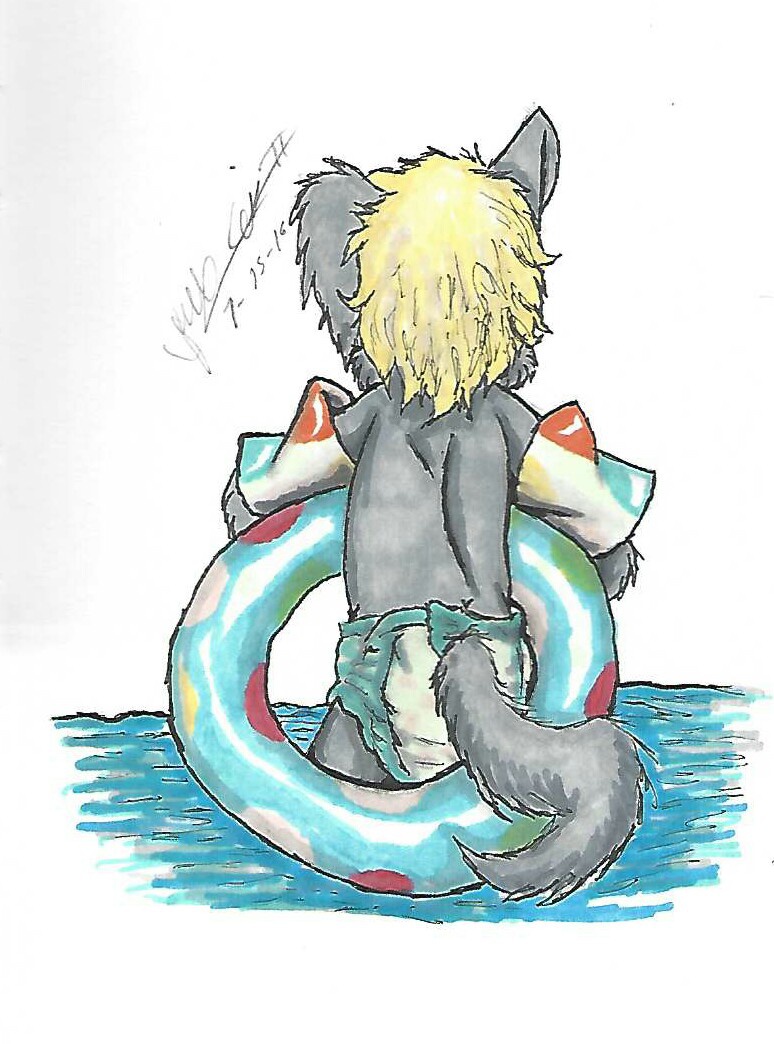 He's so baller, he doesn't even care his diaper will get all wet in the ocean.