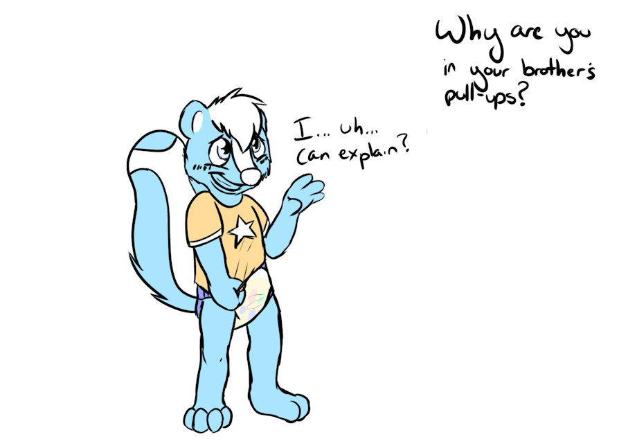 The skunk got back from a soccer training, and was alone at home... He rushed to his brother's room, and grabbed one of his bedtime pullups.