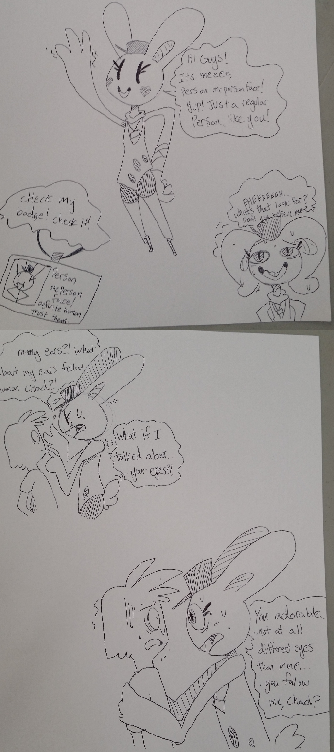 So I began something very shortly on during my breaks. I created a character just for Amazon known as Person Mcperson Face. The alien rabbit who infiltrates a stocking warehouse as a worker and thusly tries their darn hardest to impersonate being a human.