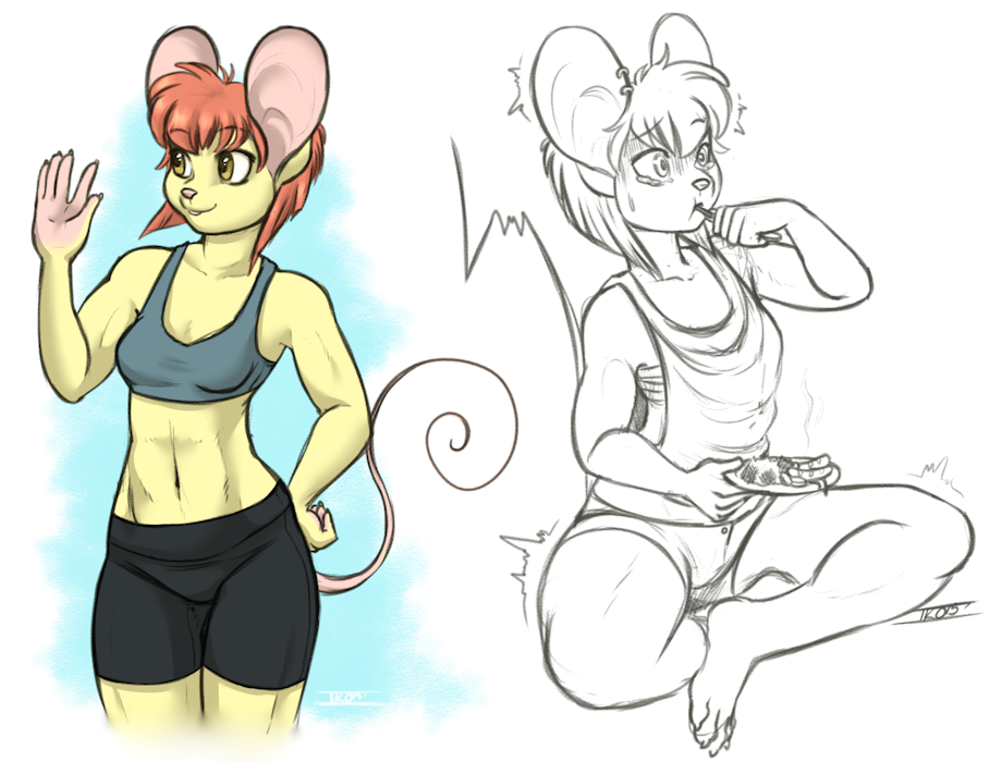 Ling is a friendly, adventurous mouse girl. She is known to be considerably less shy around predator species than most of her kin, and she has a taste for excitement. In defiance of accepted tropes for redheads she is level-headed and thoughtful in most situations, and her friends swear she has no temper to lose.