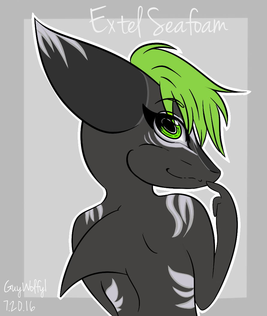 A cute image of their femboy OC Extel Seafoam