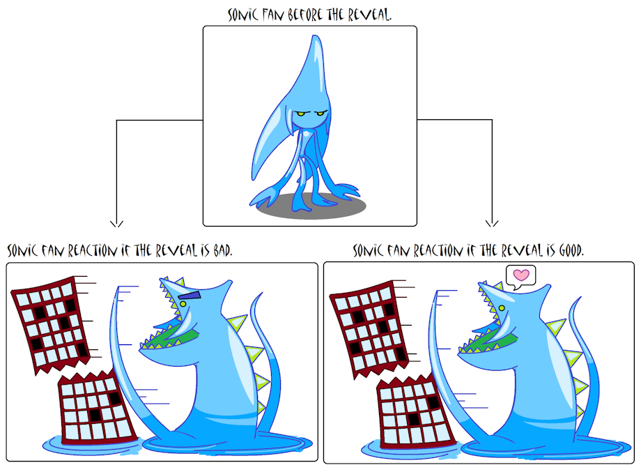 I drew this doodle as my prediction how the fanbase will react to the Sonic party/reveals today. Also I feel this will hold true for any other big future reveals too!