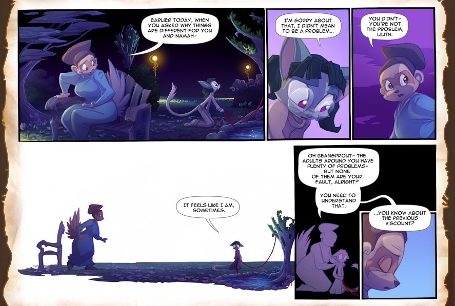 It never ceases to impress me, the quality and forethought that goes into all DK's works. Just look at Panel 4. A huge space between the 2, unlike panel 1, and Lilith looking very small... perfectly conveying exactly how she feels at that moment - small and alone. Bravo!