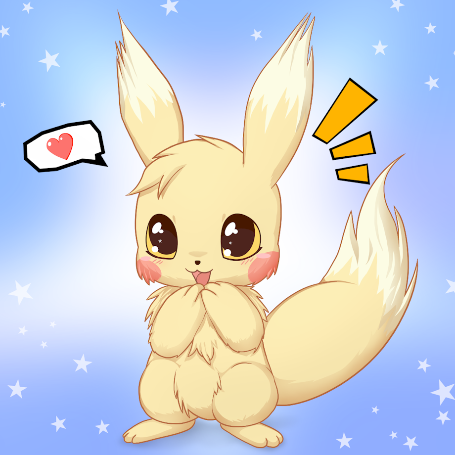 Reminds me of Pikavee.. a pikachu eevee hybrid.. FLUFFEH!!! Must... have FLUFFEH!!! Now.. make a fe
