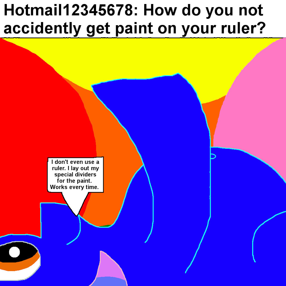 She got another question after a long period. She doesn't even use a ruler. That's how you don't get paint on it.