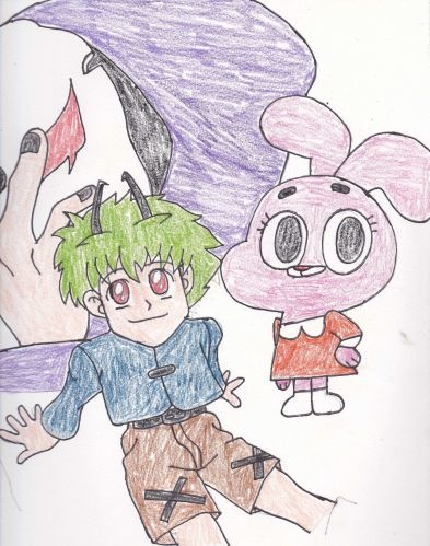 The human is called Slate, he has a psycho personality inside him that coincides with his kind personality. Luckily the pyscho side only comes out when he is in dire situations. He has powers only accesible to his psycho side such as growing bat wings, creating electricity, super strength, the ability to become intangible for 10 seconds at a time, the ability to grow woldf claws that cut through titanium, the ability to grow fangs to absorb blood, and so on.