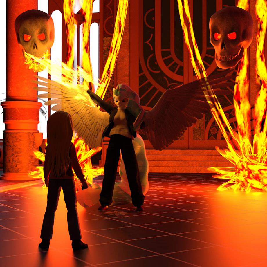 Well, this was an adventure in attrition, this puppy rendered for over ten whole hours! All that lighting and fire really did a number!