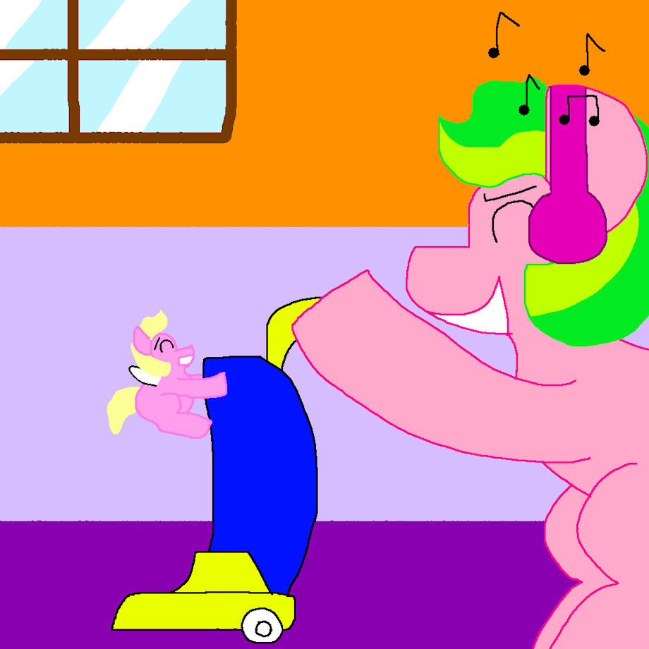 Lemon Zest (right cleans to her music while a breezie holds on for its life as requested by Spyro1997 on deviantART.