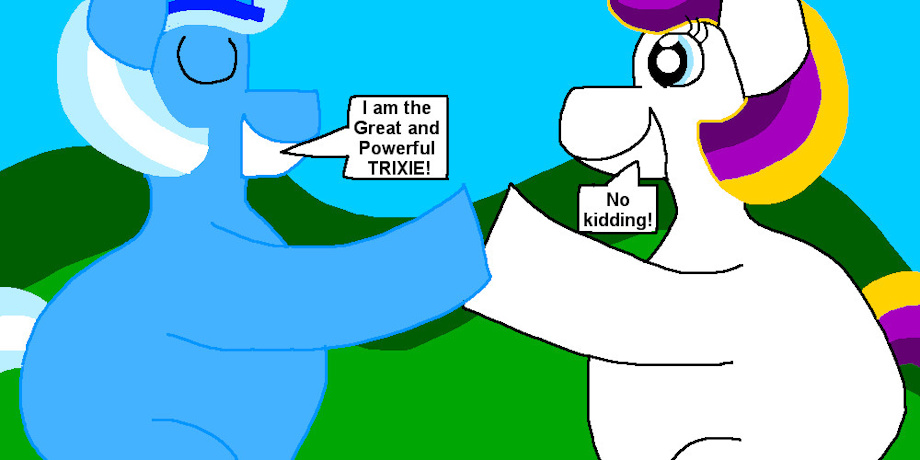 A new series whereby two ponies voiced by the same person meet for the first time and here, Kathleen Barr's two ponies Trixie (left) and Puzzlemint greet.