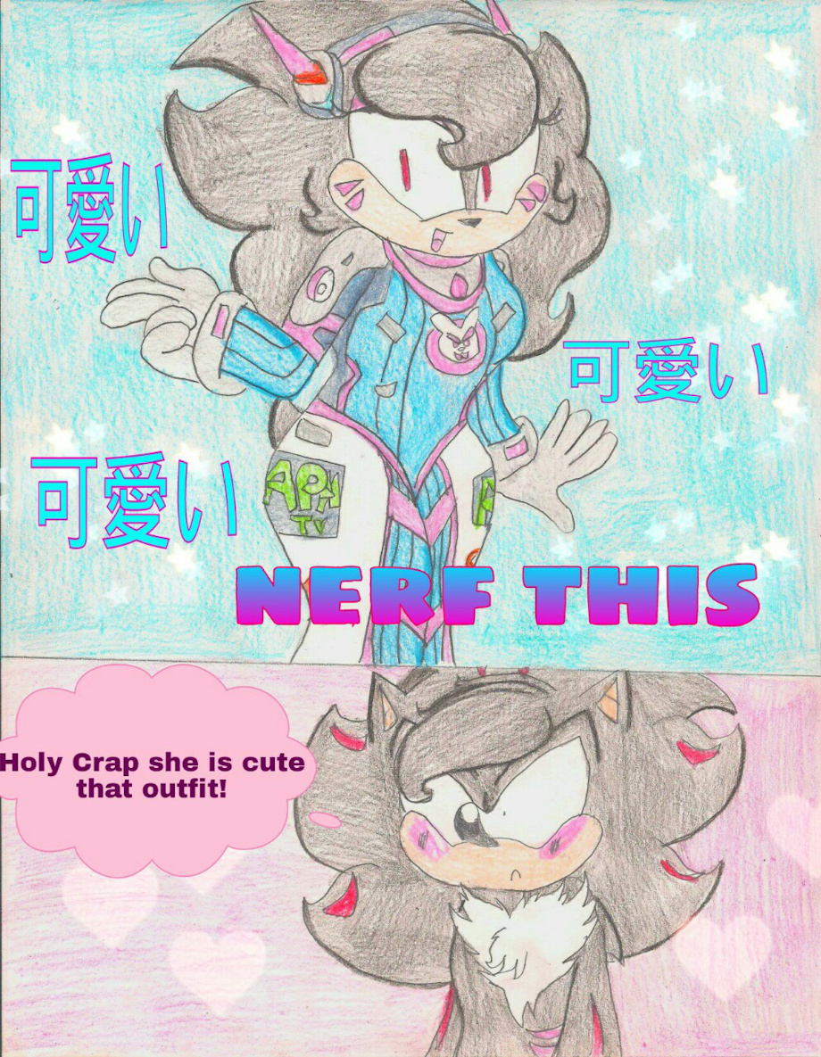 I never played the game but I know the characters and my favorite would have to be D.va and I wanted to make Spirit cosplay as her and I like how the way it turned out the design and color plus I showed how Marcus react to Spirit cosplaying as D.va and he seems to love it.