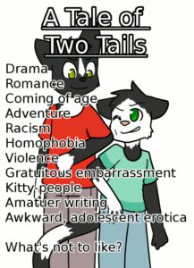 “You don't have to hide your tail from me, either. Those guys are jerks.” Black-face sat on the end of the bed, his eyes never leaving White-face. “I'm not gonna hurt you – honest.”