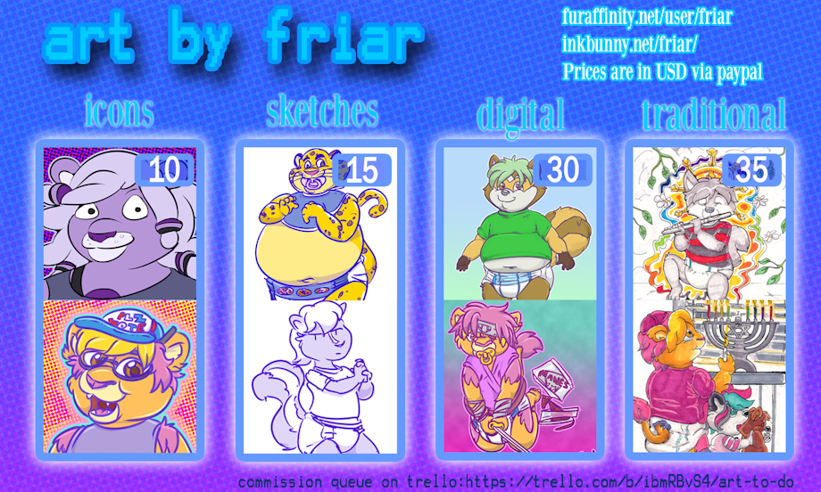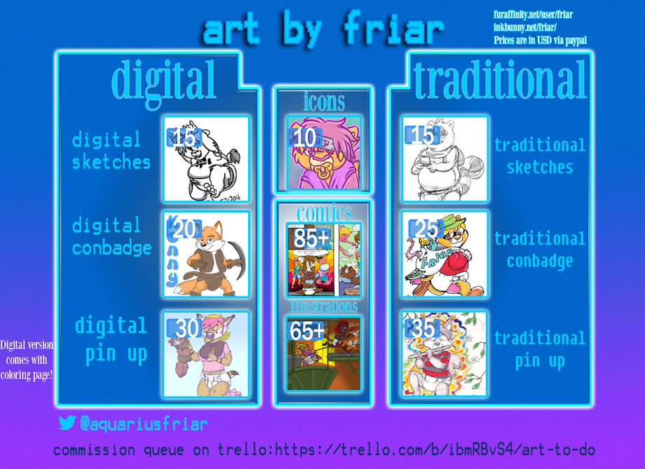 Check out my prices! Prices listed are for single character commissions.