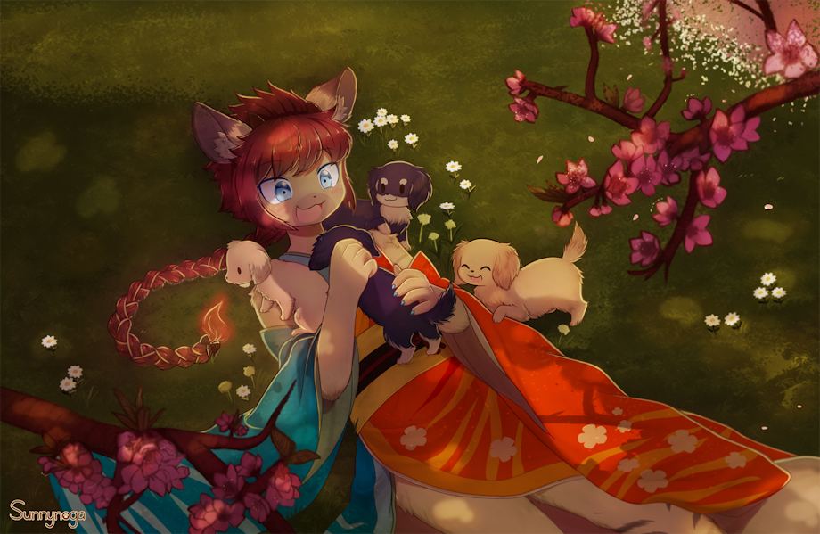 This was supposed to be finished before Fujiraid's birthday last month (7/26), but finals went on the way so i delayed it and almost took me a month due to the cold weather :stare:. The puppies are based off on the real Fuji's puppies (Hana,Hina,Tarou,Sakura) https://twitter.com/usotsuki_ba_dog
