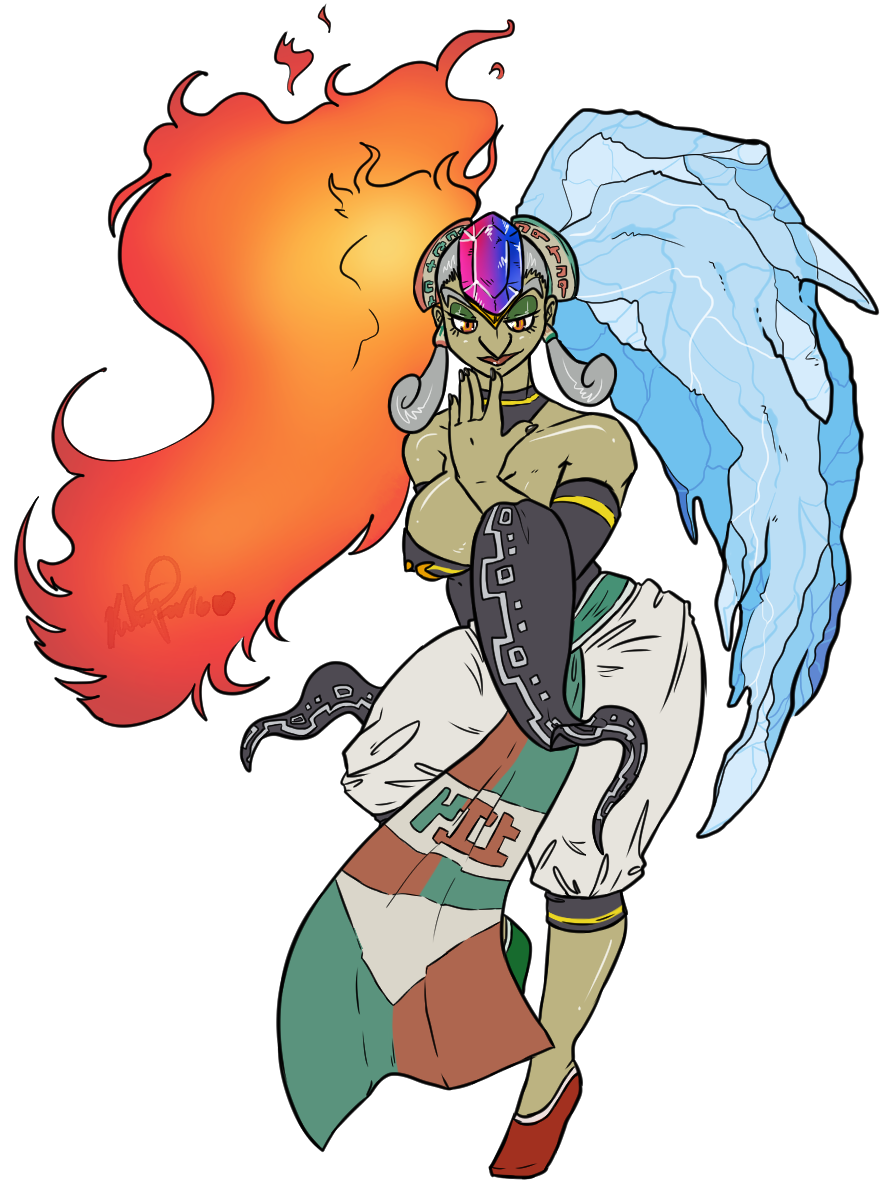 I'm, of course, a big fan of Zelda and always like the little bit of the races and stuff across the world. The Gerudo are some of my favorites, tbh. My favoritism of them is probably for the fact that they have normal-people ears, something people seem to ignore in fanart time to time. But they're also really cool cause of their noses and stuff. :B