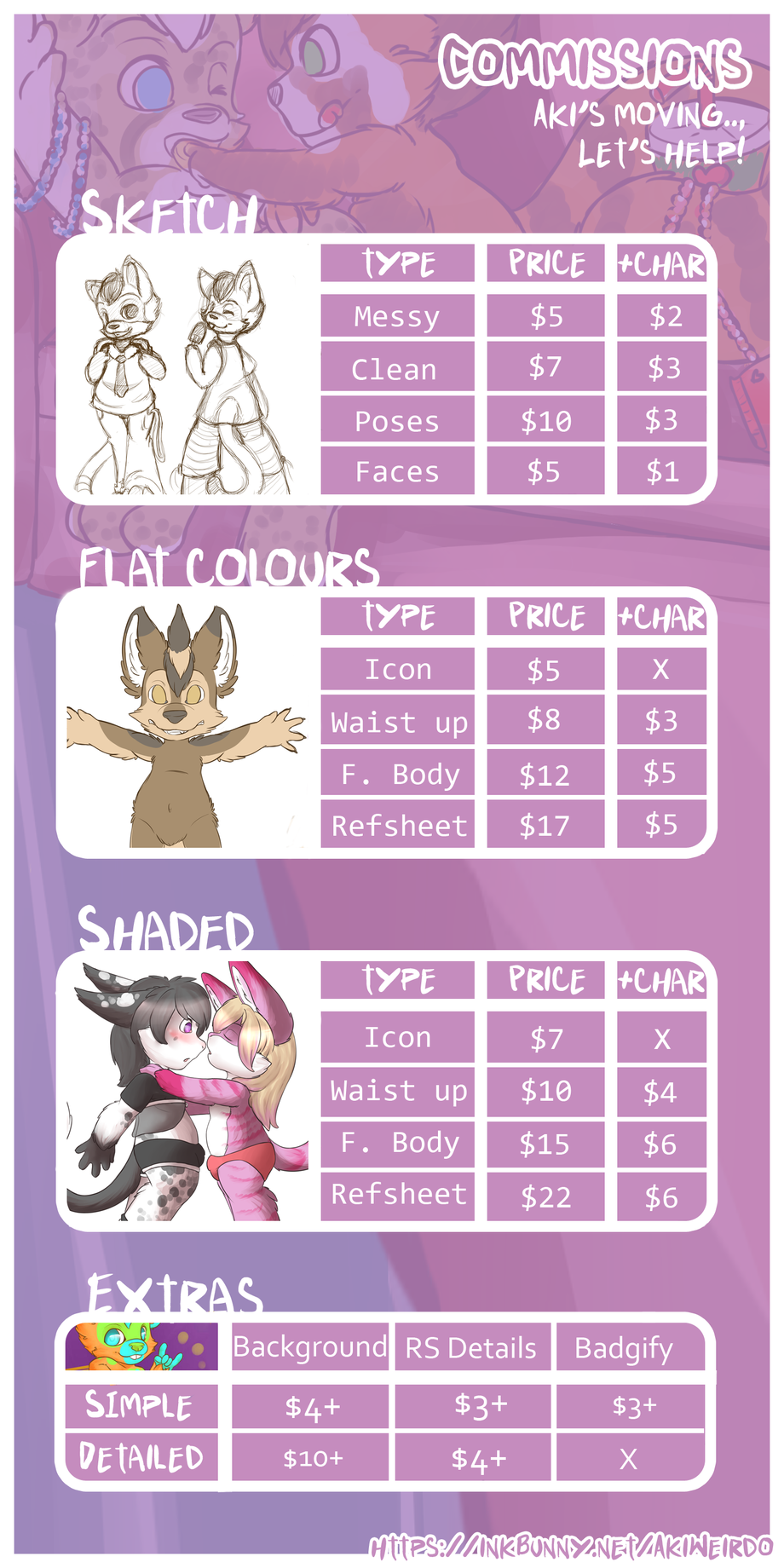 Yay! So I'm finally moving into a new (and permanent) home. But I will need some help with a few things, so here are some commission slots! ^-^