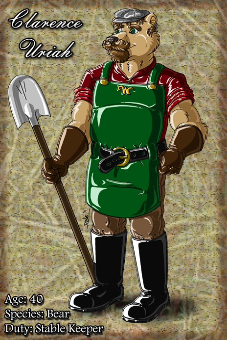 Clarence Uriah has been working as the stable keeper at the Wolf Family Estate for about 15 solid years, keeping the horses groomed, clean, fed and well cared for. One might think it's a crummy job, but Clarence feels it's worth the effort. After all, he's become a close friend to the family (Later becomes part of the family) and not merely an employee. Edmund treats him with the same respect and care that he would his own family members, so it's certainly made Clarence's duties rather rewarding.