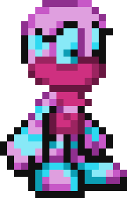 cephalopod body imitating the shape of a human with a tail and a pony tail, pink with blue bands, ears and eyes.