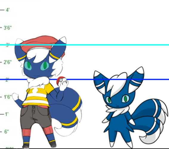 Milo is by all surprises a taller than average, yet still (mostly) feral-bodied Meowstic with mostly blue fur with white highlights on the paws, Tail, and ears, though yellow rings are visible on the tails and rings, a recessive trait from the Umbreon that was bred with his Mother.
