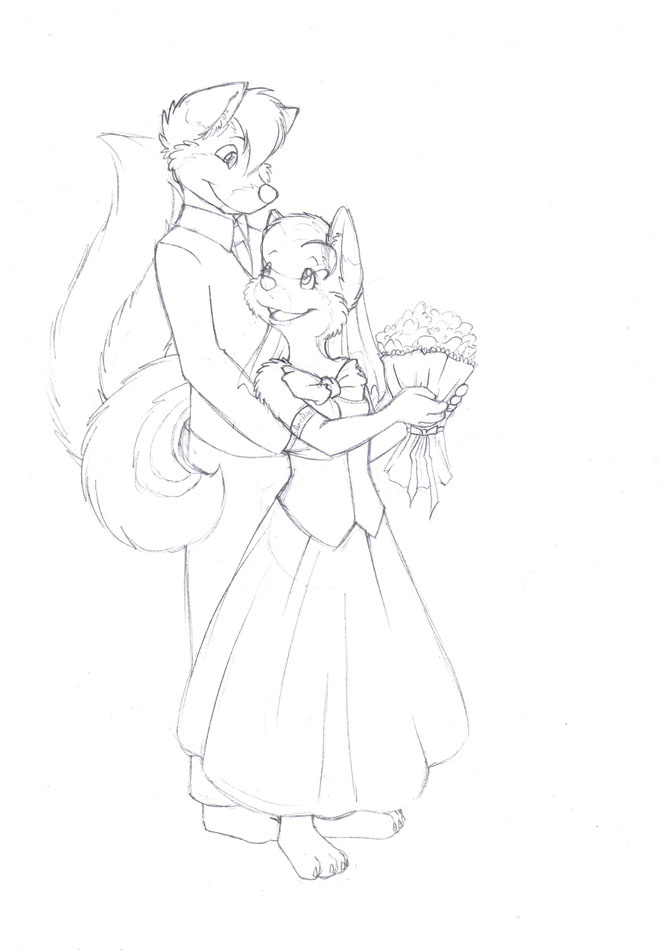 Here is the sketch part of an art trade with kuroookamitsume of her and her mate, nanaki_leon_wolfbane. It's wedding themed since they're looking to get married soon :)