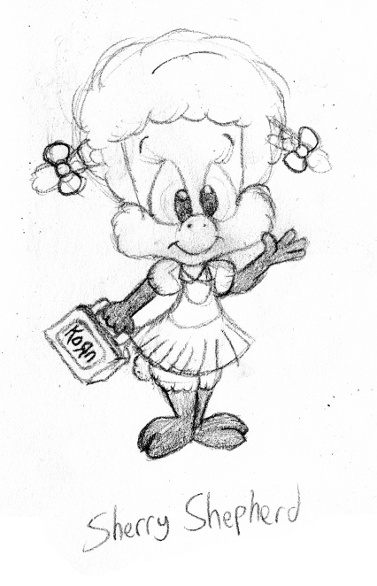 This was a character Ether thought up for his Tooned In series (Our first game; part 1, part 2, part 3). We never got around to playing a game with her as a character, but we may eventually. The idea is, she's an adorable little toon sheep girl. Very dainty and girly, and protective of her fur. And she likes death metal. Tee hee.