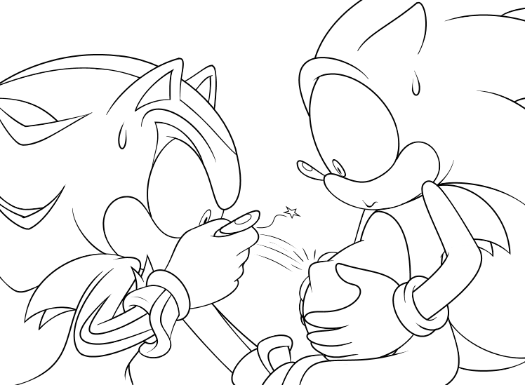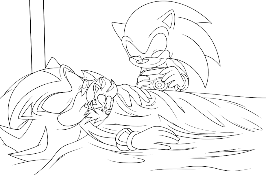 Preggy Sonic is adorable~! Also I love how the baby kicked Shadow's nose x3