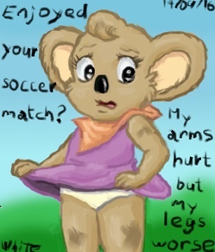 Nutsy the Koala Sister was playing football with his freinds because they are male and hate dolls but the weak gil got hurt.