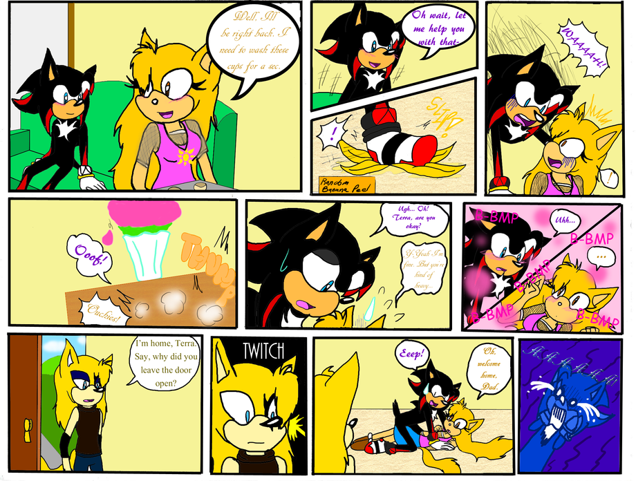 Man, having a father who is a vampire can sure be scary if he sees his little girl pinned down by some strange hedgehog...x3 This was based of from a scene of Ouran Host Club, btw; I thought it'll be funny to put them with my characters =w= Well, enjoy~