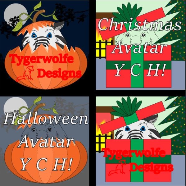 All Patrons of Tygerwolfe Designs will be recieving these Halloween and Christmas themed avatars! (Don't celebrate Christmas? Not a problem! Hanukkah, Kwanzaa, Ramadan, and Yule themed avatars are also available!)