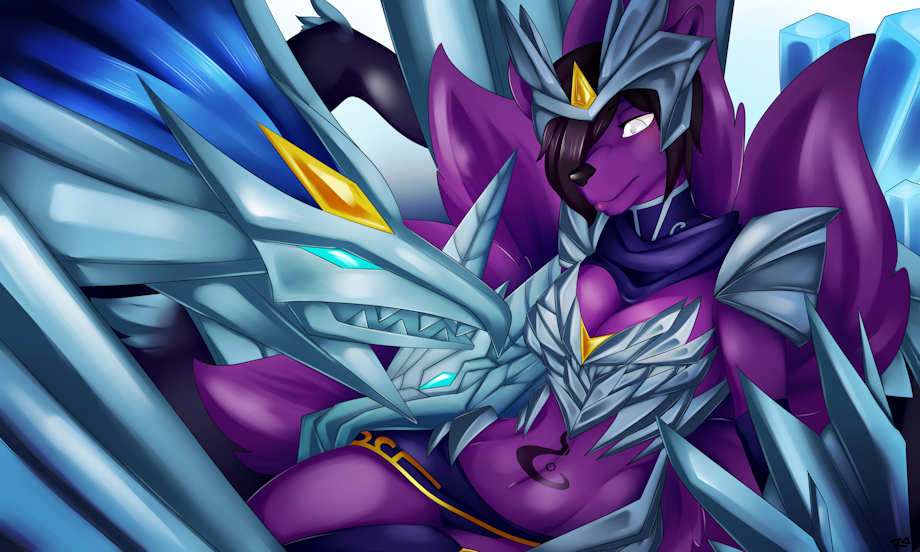 This was a YCH I got on FA of Ayano cosplaying as the Ice Drake skin for Shyvana from League of Legends.