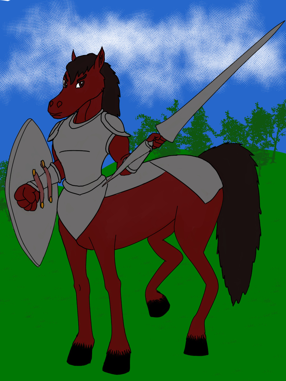Well, here's my Monthly character design for September. The theme was Centaurs, so I made a Centaur/Equitaur Knight. He is both the Knight AND the Mount!