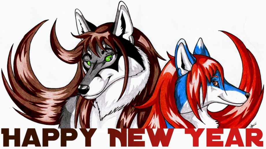 This was a amazing request myself and werwolfkaiser both pulled up together {Her DA name changed to Ikwolfin by that time}. Sapphire and her sona back to back saying Happy New Year at the bottom. And it looks amazing! <3