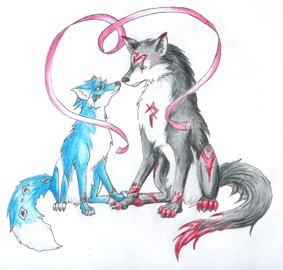 Odin and Sapphire in their Feral forms. Her paw on his while they stare into eachother's eyes. Lovers for all eternity.