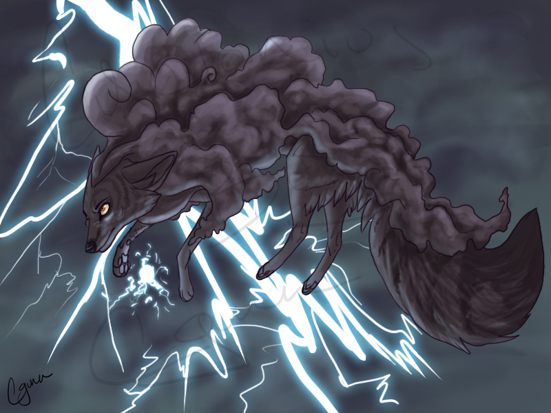 Lord Cyclonius. A Storm Fox. I dunno. I was looking at the clouds a while back and imagined I saw some foxes running through them. Then instantly I had this idea. A fox that basically is part of a cloud. Or the cloud is part of it. Not really an original concept, I'd imagine. But I thought it was cool. Not to mention, he's extremely fun to draw. I have a little story about him and some other sky foxes. As you'd imagine, Lord Cyclonius is a bad guy, but I love him. lol. I like drawing the "cloud cape" as I call it.